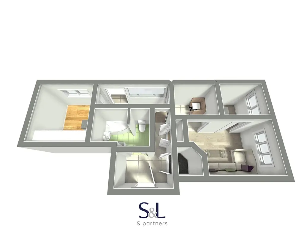 Dispozice 3+1 nabízí praktické a prostorné rozložení místností s dostatkem úložného prostoru. Součástí bytu je obývací pokoj, ložnice a dětský pokoj vybavený skříní. Kuchyně je vybavena sporákem. Prostorná jídelna. Koupelna disponuje rohovou vanou a pračkou. Velkou výhodou je také samostatná šatna a špajz, které zajišťují dostatek úložného místa.