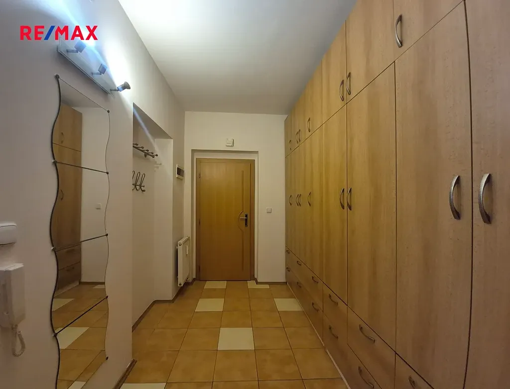 Byt se sestává z prostorné předsíně s vestavěnými skříněmi, obývacího pokoje, menší ložnice, kuchyně a koupelny s WC. K bytu patří zděný sklep o výměře 6,70 m2 v suterénu domu.