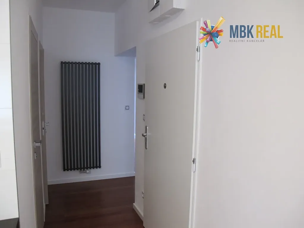 Dispozice bytu: samostatná kuchyň, kompletně vybavená vestavěnými spotřebiči (indukční deska, trouba, digestoř, mikrovlnná trouba, zabudovaná lednice s mrazákem, pračka - součástí kuchyňské linky), luxusní koupelna se sprchovým koutem, umyvadlo se skříňkou, WC samostatně.