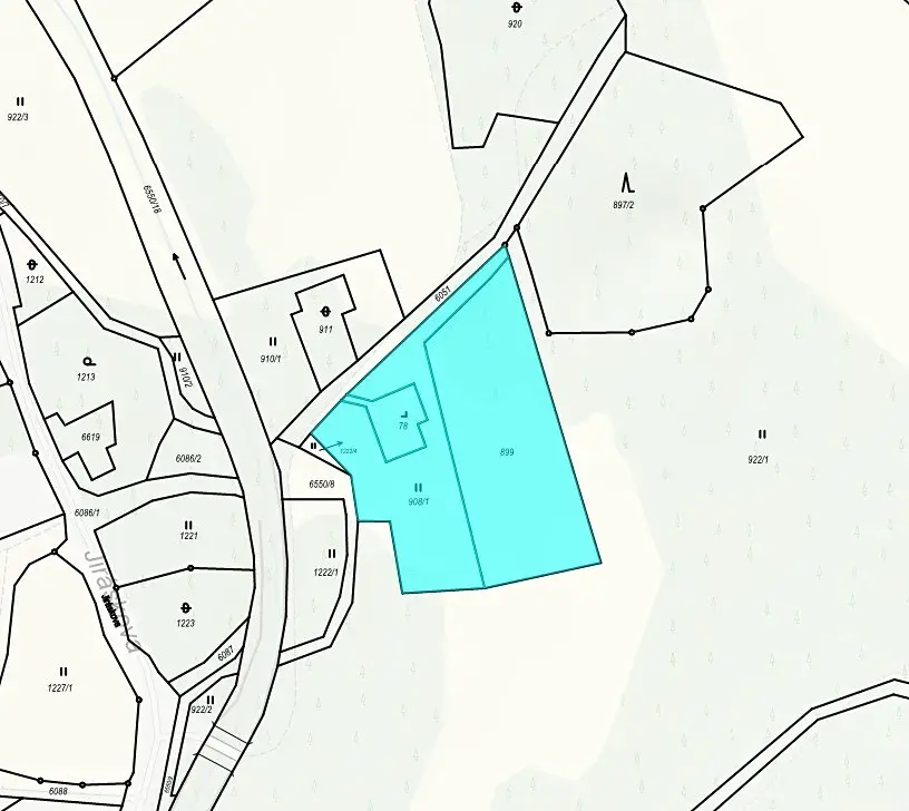 Předmětem dražby je ideální spoluvlastnický podíl o velikosti 1/6 (jedna šestina) ) na pozemcích parc. č. St. 78 (zastavěná plocha a nádvoří), parc. č. 899 (orná půda) a parc. č. 908/1 (trvalý travní porost) v kat. území Jiříkov, obec Jiříkov. Pozemky se nacházejí na severním okraji zastavěné části města Jiříkov. Jedná se o soubor sousedících travnatých pozemků nepravidelných tvarů. V katastru nemovitostí jsou pozemky vedené jako zastavěná plocha a nádvoří, orná půda a trvalý travní porost o výměře 2 813 m2. Soubor pozemků je na severozápadní straně ohraničený nezpevněnou cestou. Na travnatých pozemcích se nacházejí listnaté porosty. Pozemky jsou svažité k severozápadní straně. V době oceňování byly pozemky neudržované a nevyužívané. K pozemkům vede nezpevněná cesta, nacházející se na pozemku parc. č. 6051, který je ve vlastnictví města Jiříkov.