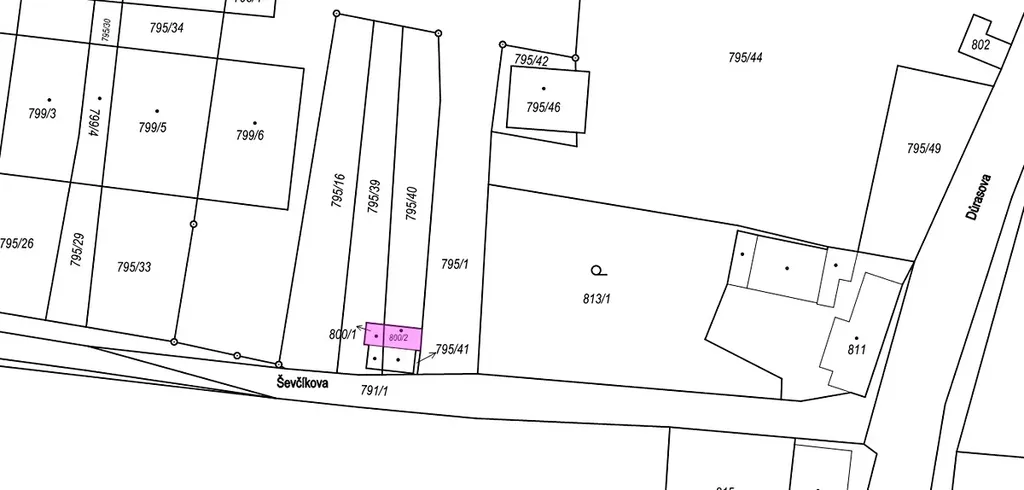 Stavba bez č.p./č.e. Mšec stojí na pozemcích parc. č. 800/1 o výměře 21 m2 a parc. č. 800/2 o výměře 44 m2.