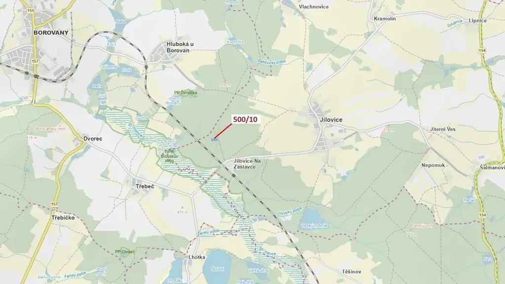 Lesní pozemek o výměře 5 755 m2, parcelní číslo 500/10, podíl 1/1, katastrální území Jílovice u Trhových Svinů, obec Jílovice, obec s rozšířenou působností Trhové Sviny, okres České Budějovice, Jihočeský kraj. Po těžbě.