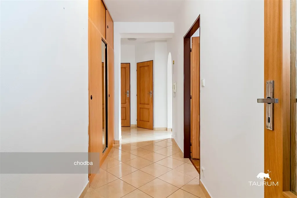 Byt je umístěný v 1. patře domu a má dispozici 2+1. Jeho výměra je 65 m2 včetně lodžie. Všechna jeho okna směřují do zeleně na jihovýchodní stranu, včetně prostorné lodžie přístupné z obývacího pokoje. Byt je ve výborném stavu, který umožňuje okamžité bydlení bez nutnosti jakýchkoliv dalších úprav.