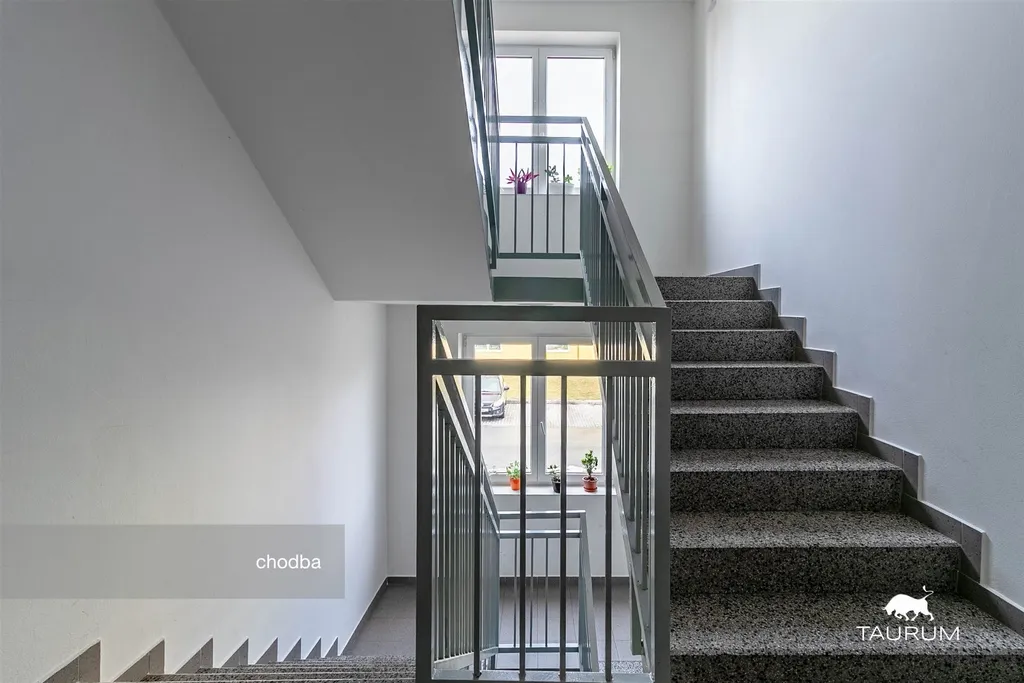 K bytu patří zděný sklep. Kromě sklepa je ve společných prostorách také prádelna se sušárnou a kolárna. Internet je v domě zajištěn. Parkovat lze v okolí domu na veřejném parkovišti.