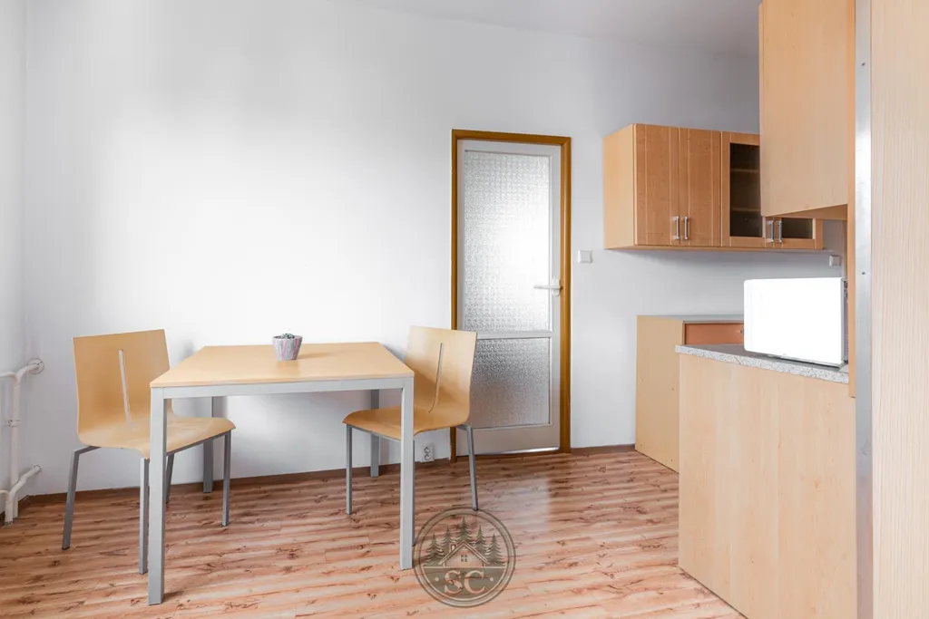 Byt otevírá předsíň s prostornou vestavnou skříní. Na ni navazuje samostatná kuchyně a obývací pokoj, ze kterého je vstup do menší ložnice. Kuchyň je vybavena kuchyňskou linkou a je zde místo pro jídelní kout. Z kuchyně se vstupuje do koupelny se sprchovým koutem. Koupelna je propojena přes samostatné WC zpět do předsíně.