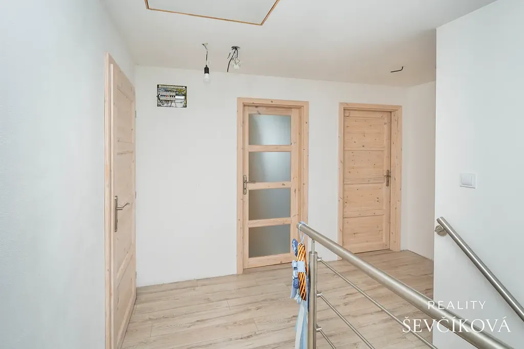 Interiér je kompletně zrekonstruován, výjimkou je koupelna v patře, připravená na dokončení podle představ nového majitele. Spodní koupelna je funkční a v dobrém stavu, přesto s ohledem na dnešní trendy lze do budoucna uvažovat o modernizaci.