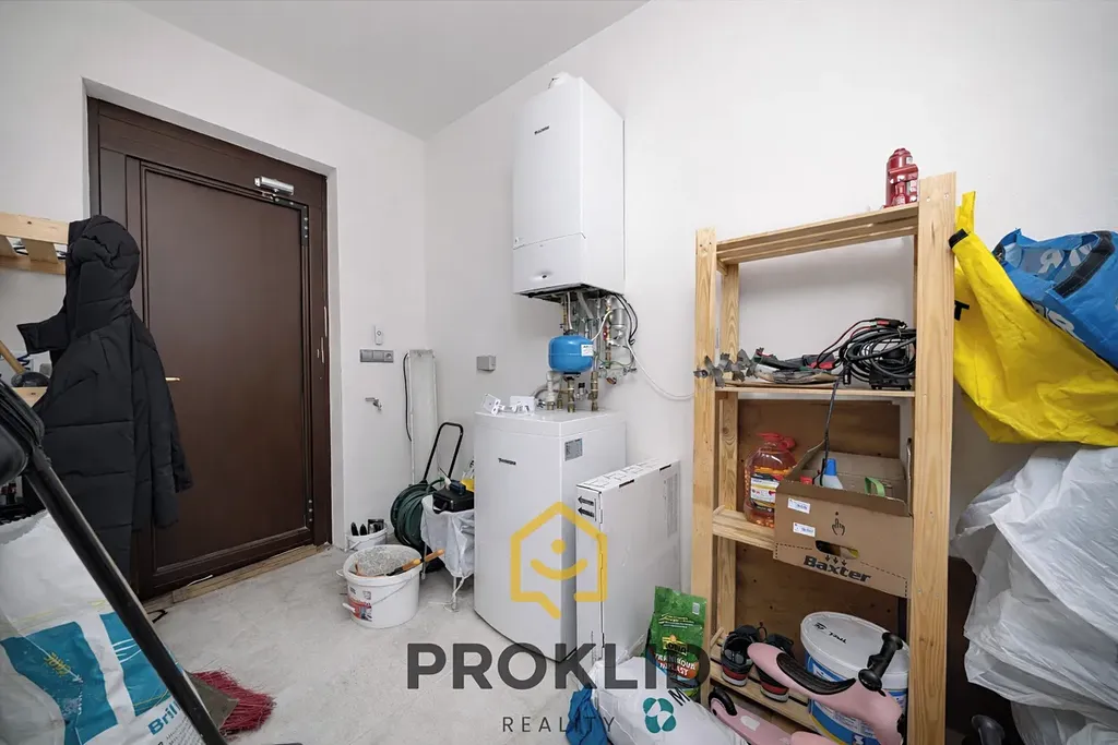 Celé vnitřní řešení rodinného domu odpovídá moderním trendům v bydlení s maximální praktičností. Dominantou je zde prostorná kuchyň na míru s jídelnou navázaná posuvnými dveřmi přímo na prostorný obývací pokoj. Přízemní podlaží rodinného domu dále doplňuje prádelna, toaleta, chodba, samostatný pokoj s širokým možným využitím a přímým vstupem do vyhřívané garáže a technické místnosti, ze které je výstup na terasu.