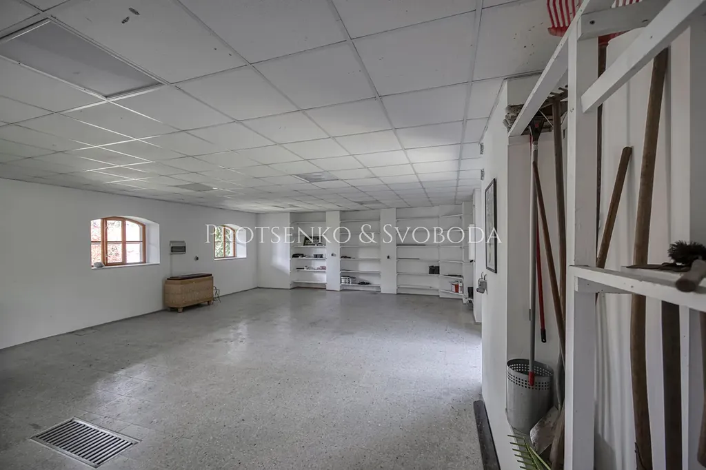 Samostatná část sklepních prostor se zvláštním vstupem ze zahrady (cca 50 m²) je tvořena třemi vytápěnými místnostmi, připravenými například pro veterinární praxi a jiné.