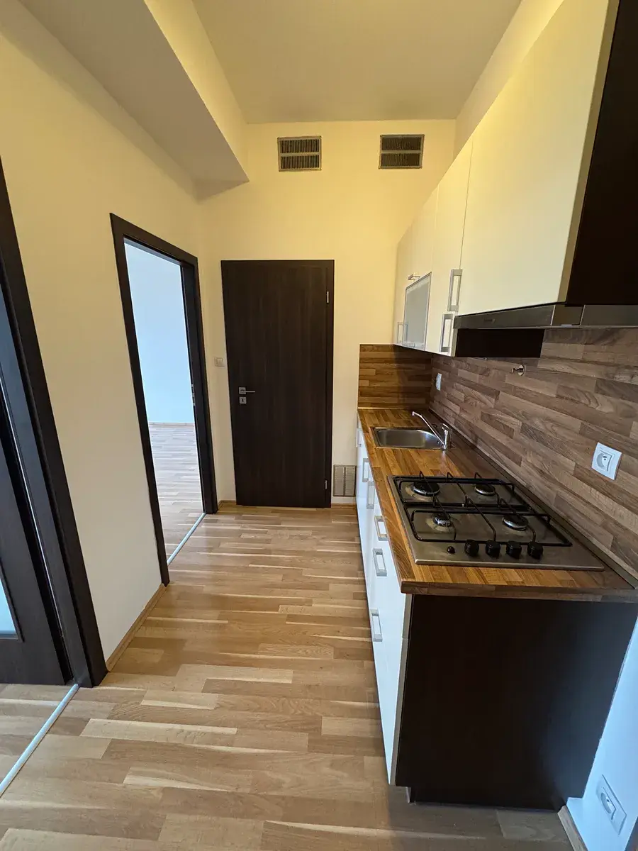Ze vstupní chodby, kde se nachází kuchyňská linka, je vstup do dvou samostatných neprůchozích pokojů a koupelny s WC. Součástí kuchyňské linky je lednice s mrazákem, plynová varná deska a digestoř. Není zde zabudovaná trouba a myčka. Koupelna je vybavena zcela novou pračkou. Byt má samostatný plynový kotel. Na podlaze je plovoucí podlaha a v koupelně dlažba. Byt v minulosti prošel kompletní rekonstrukcí.