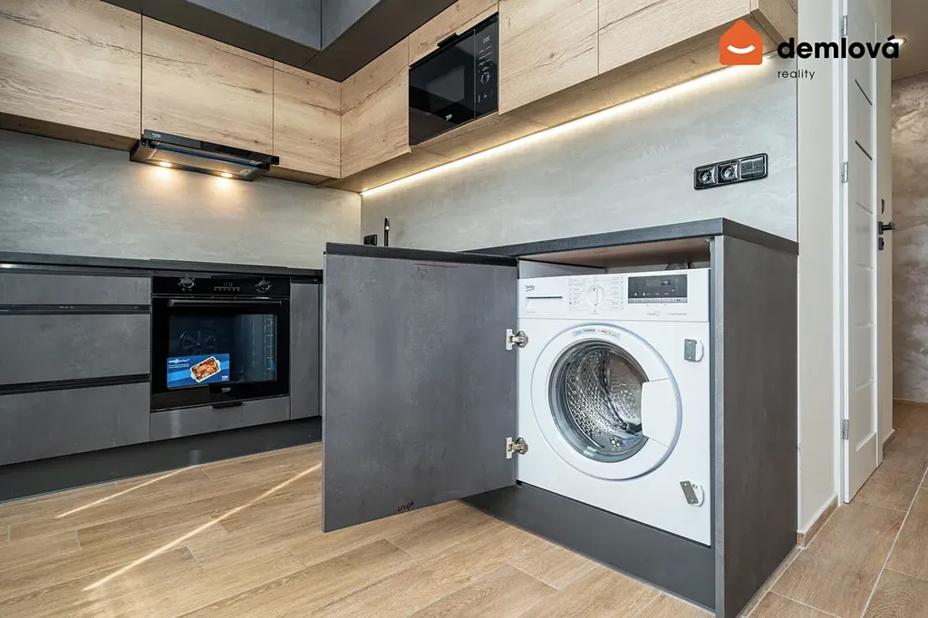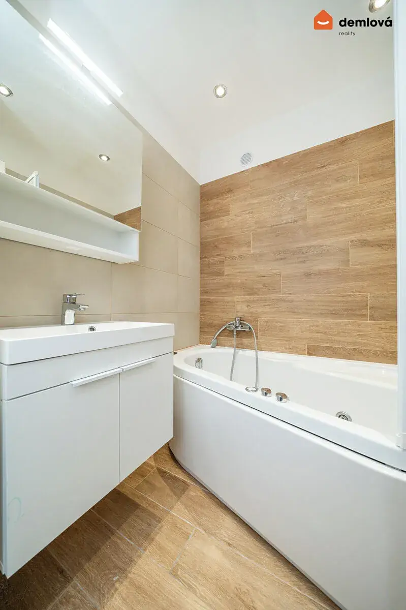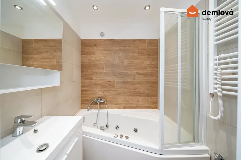 Exkluzivně nabízíme dlouhodobý pronájem bytu 2+1 s lodžií, na ulici O. Jeremiáše v Ostravě-Porubě . Byt je po nově dokončené, vkusné, rekonstrukci. V pokojích jsou plovoucí podlahy, v chodbě a kuchyni je dlažba, interiérové dveře včetně zárubní, rozvody elektřiny v mědi, nové omítky, LED osvětlení. Součástí pronájmu jsou nové vestavěné skříně (chodba, pokoj) a koupelnový nábytek. Kuchyňská linka na míru s vestavěnými spotřebiči (myčka, el. trouba, indukční deska, digestoř, mikrovlnná trouba, lednice s mrazící jednotkou, pračka). Koupelna s masážní rohovou vanou a umyvadlem se skříňkou. Samostatné závěsné WC. V bytě je prostorná lodžie s příjemným výhledem do okolí. Výhodou bytu jsou neprůchozí pokoje, výhled na dvě světové strany a samostatná šatna vybavená skříněmi. Dům je po celkové revitalizaci – zateplení, plastové okna vč. elektrických venkovních rolet, zvonky, schránky. K bytu náleží sklep v suterénu domu. Klidná a žádaná lokalita, parkování u domu, veškerá občanská vybavenost v dosahu. K nastěhování ihned. Nájem 17 500 Kč, služby 3190 Kč + elektřina, internet. Kauce 2 x měsíční nájem včetně služeb. Provize RK 1 x měs nájem + DPH.