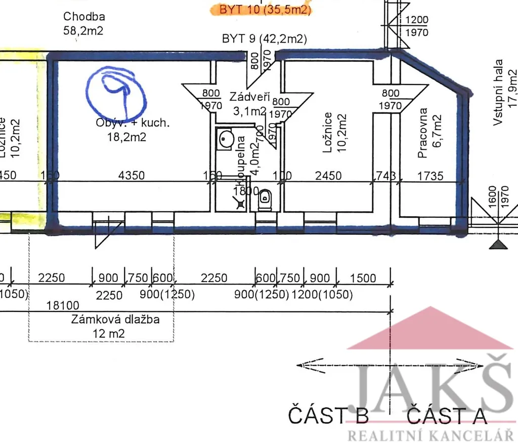 Podlahová plocha: 42,2 m2.