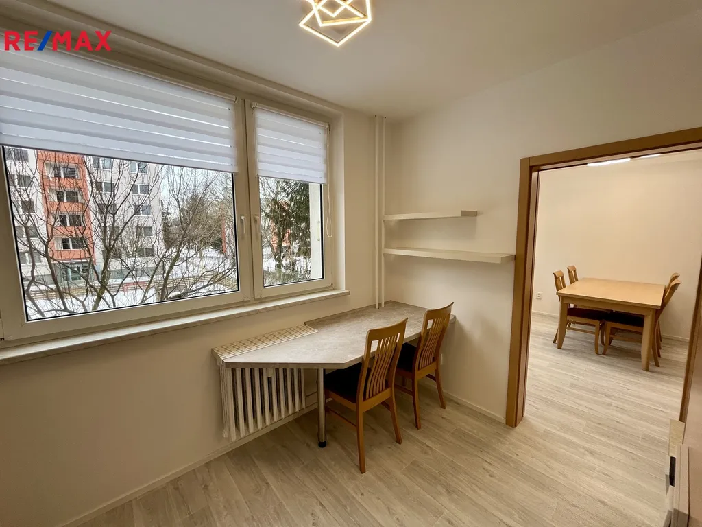 Je situován v bytovém domě s výtahem. Byt je řešen velmi prakticky – všechny pokoje mají samostatný vstup z centrální chodby, což zajišťuje dostatek soukromí pro každého člena domácnosti. Součástí bytu je lodžie s příjemným výhledem a sklepní kóje v suterénu domu.