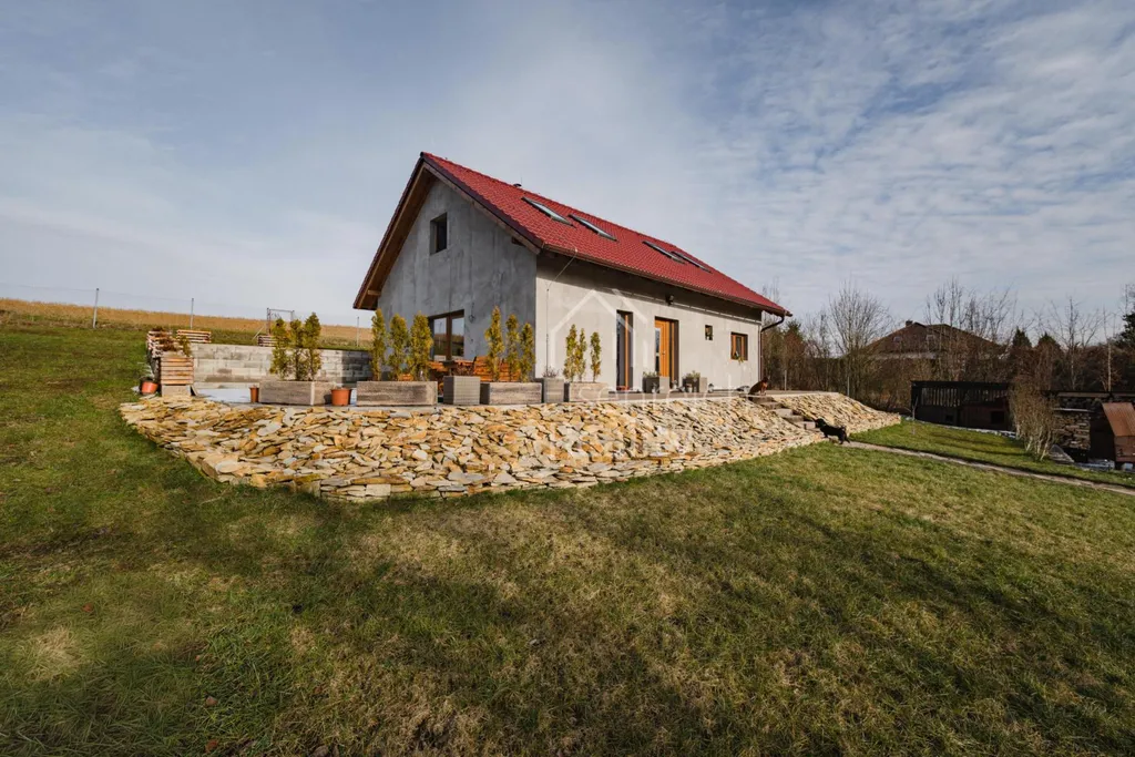 Dům je navržen s důrazem na komfort, kvalitu a praktické rodinné bydlení. Dominantou přízemí je světlý obývací pokoj s krbovými kamny a přímým vstupem na terasu, která plynule navazuje na zahradu. Součástí je plně zařízená kuchyň včetně spotřebičů. V celém domě je instalováno podlahové vytápění, plastová okna s trojskly zajišťují výborné tepelně-izolační vlastnosti.