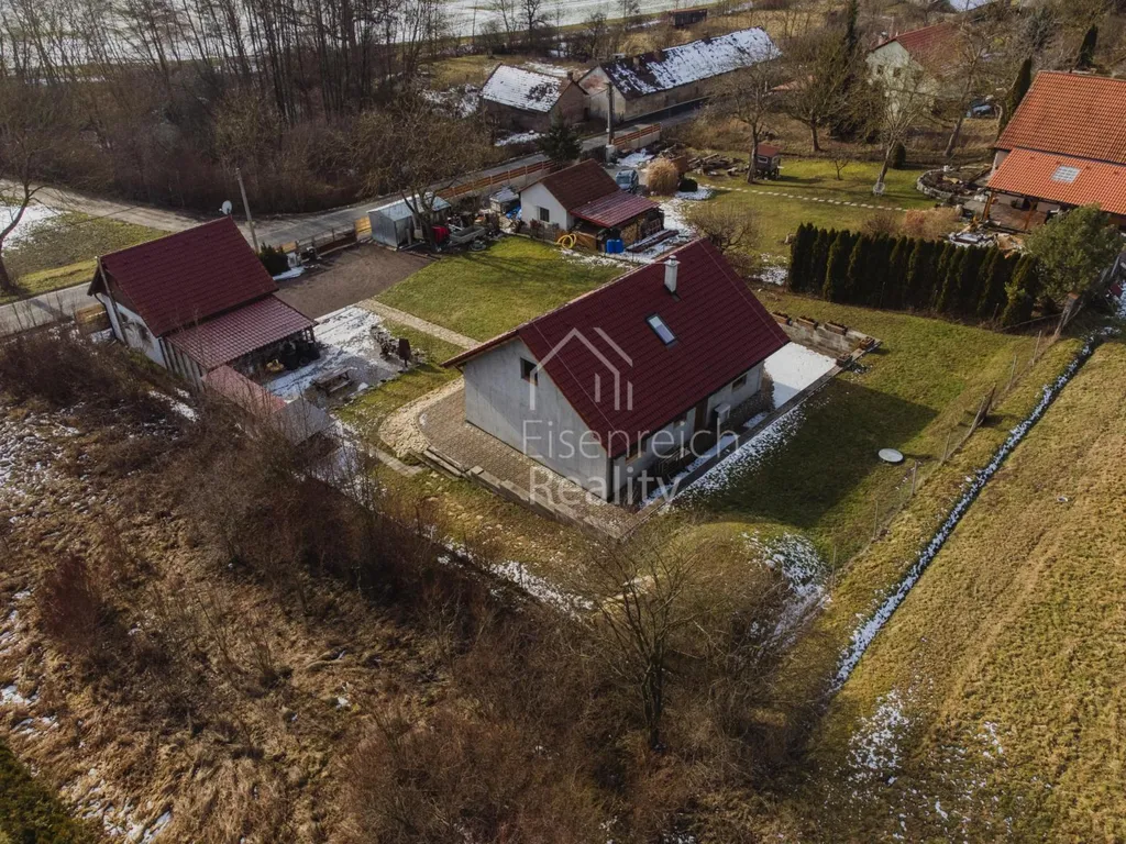 Součástí nemovitosti je garáž se zázemím o velikosti 35,6 m a navazující prostor pro letní posezení o výměře 28,8 m. Na zahradě se dále nachází útulný sklípek s posezením, ideální pro relaxaci i společenská setkání.