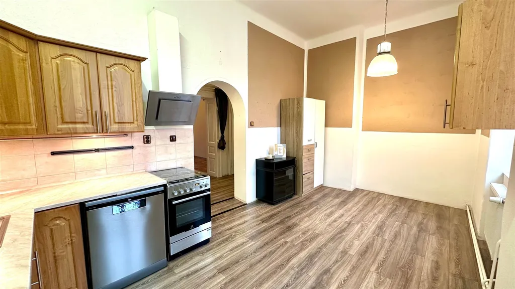 V exkluzivním zastoupení majitele nabízíme příležitost ke koupi velmi prostorné bytové jednotky o dispozici 4+1 o užitné ploše 120 m2. Tato bytová jednotka se nachází v 1. patře udržovaného cihlového bytového domu, v ulici Evropská, v širším centru Chebu. Byt nabízí velkorysý prostor a tvoří jej prostorná předsíň (11,19 m2), kuchyň (14,84 m2), čtyři pokoje (23,34 m2, 22,15 m2, 22,40 m2, 18,81 m2) a koupelna s toaletou (7,13 m2). Ohřev vody je řešen elektrickým bojlerem a vytápění bytu plynovým kotlem Protherm. K bytu náleží sklep o výměře 34 m2.