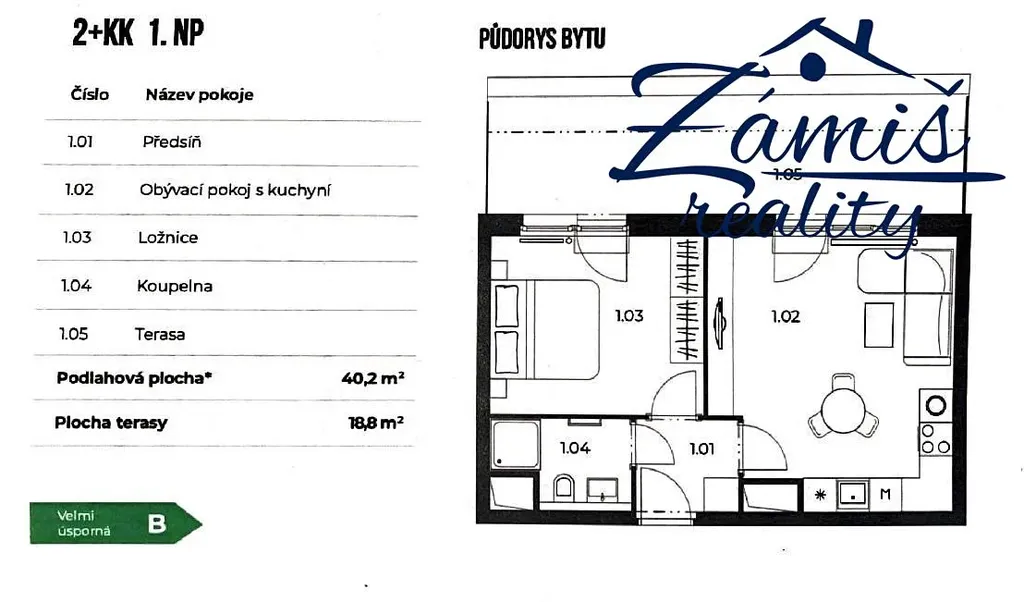 Byt v novostavbě s prostornou terasou a výhledem do klidné části ulice.