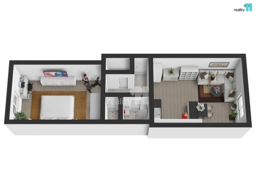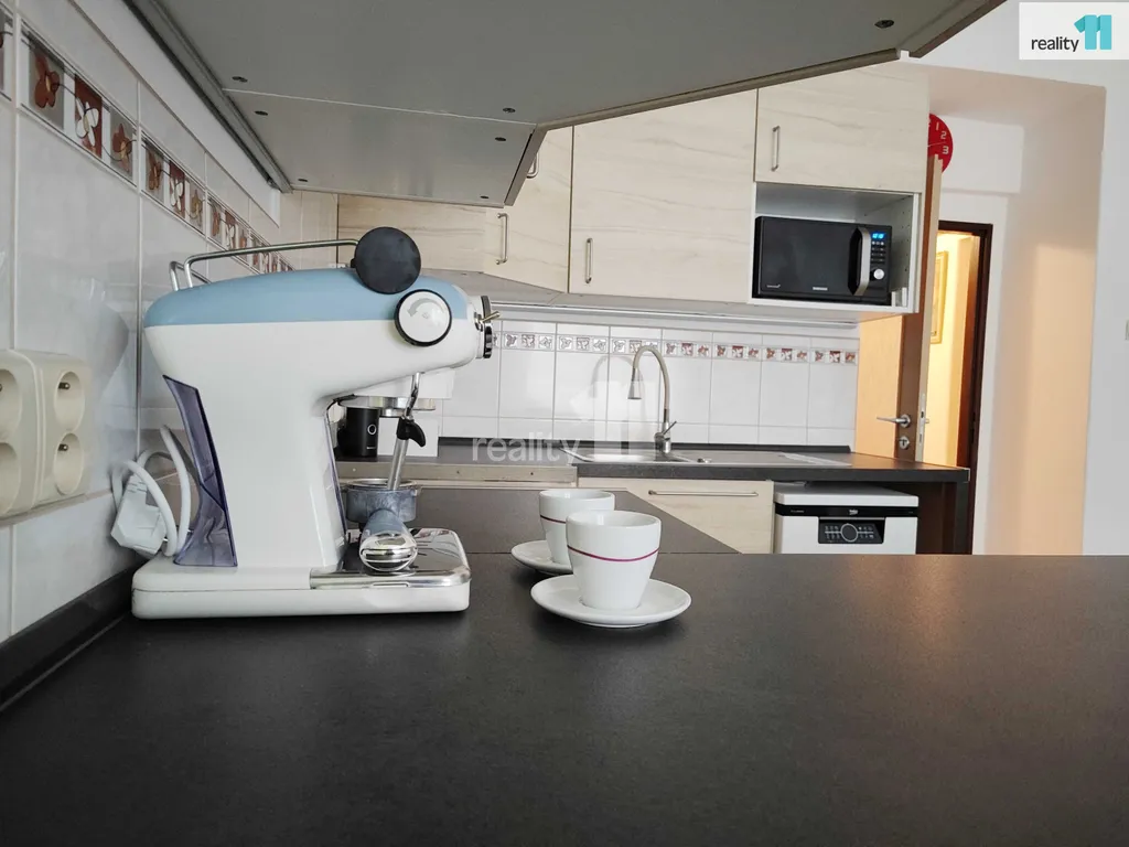 - praktické zázemí: Koupelna se sprchovým koutem, pračkou i sušičkou a nepostradatelná komora přímo v bytě.