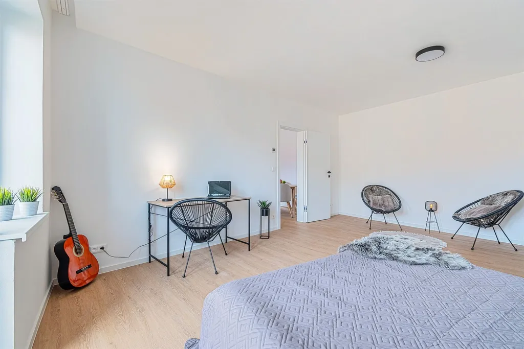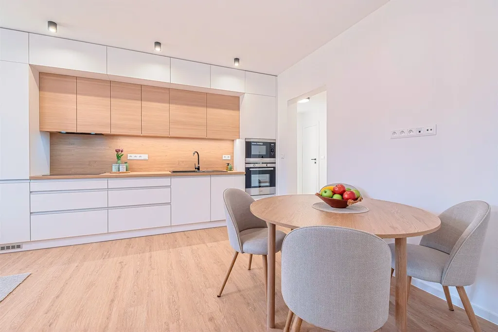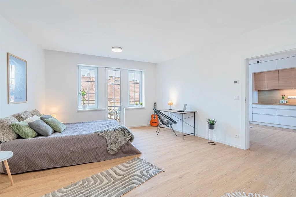 Poctivá kvalitní rekonstrukce celého bytu proběhla v r. 2025 (s dokončením v r. 2026), kdy v rámci rekonstrukce byla změněna i vnitřní dispozice bytu. V rámci prací byly kompletně vyměněny všechna okna za kvalitní plastová akustická okna (termo trojskla), zcela nové jsou samozřejmě veškeré rozvody (tj. elektřina, voda, odpady), topení je v celém bytě podlahové (každý pokoj s vlastním termostatem), kvalitní vinylové podlahy v celém bytě kromě koupelny a WC, kde najdeme kvalitní italské dlažby a obklady, nové jsou i všechny interiérové bezfalcové dveře s magnetickými zámky a kvalitními klikami, nové vstupní bezpečnostní dveře, dále byla na míru zhotovená kvalitní kuchyňská linka se všemi vestavěnými spotřebiči (myčka, lednice s mrazákem, digetoř, el. vestav. trouba, vestav. mikrovlnná trouba. Dále v bytě byly zhotovené SDK podhledy a bylo osazeno kvalitní LED osvětlení v celém prostoru bytu. Koupelna se sprchovým koutem typu walkinn, WC je samostatné s umyvátkem a kvalitní sanitou. V bytě možno ponechat část vybavení nábytkem (2x sedačka, konf. stolek, jídelní stů se 4 židlemi).