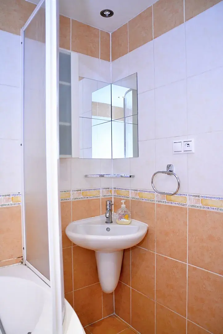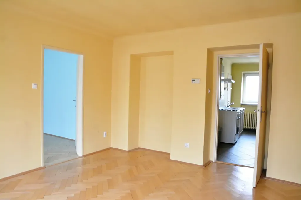 Dispozice bytu: velká předsíň s úložnými prostory, samostatné WC, koupelna i kuchyně. U kuchyně dále samostatná spíž s oknem. Dále jsou zde dvě obytné místnosti, kde jsou revitalizovány parkety (obývací pokoj i ložnice). V předsíni, kuchyni včetně koupelny i WC je dlažba.