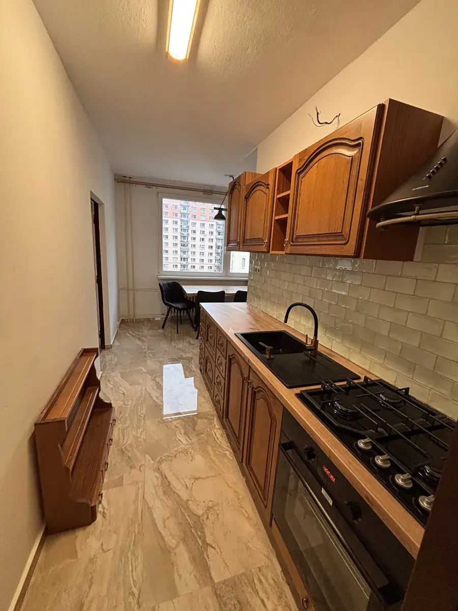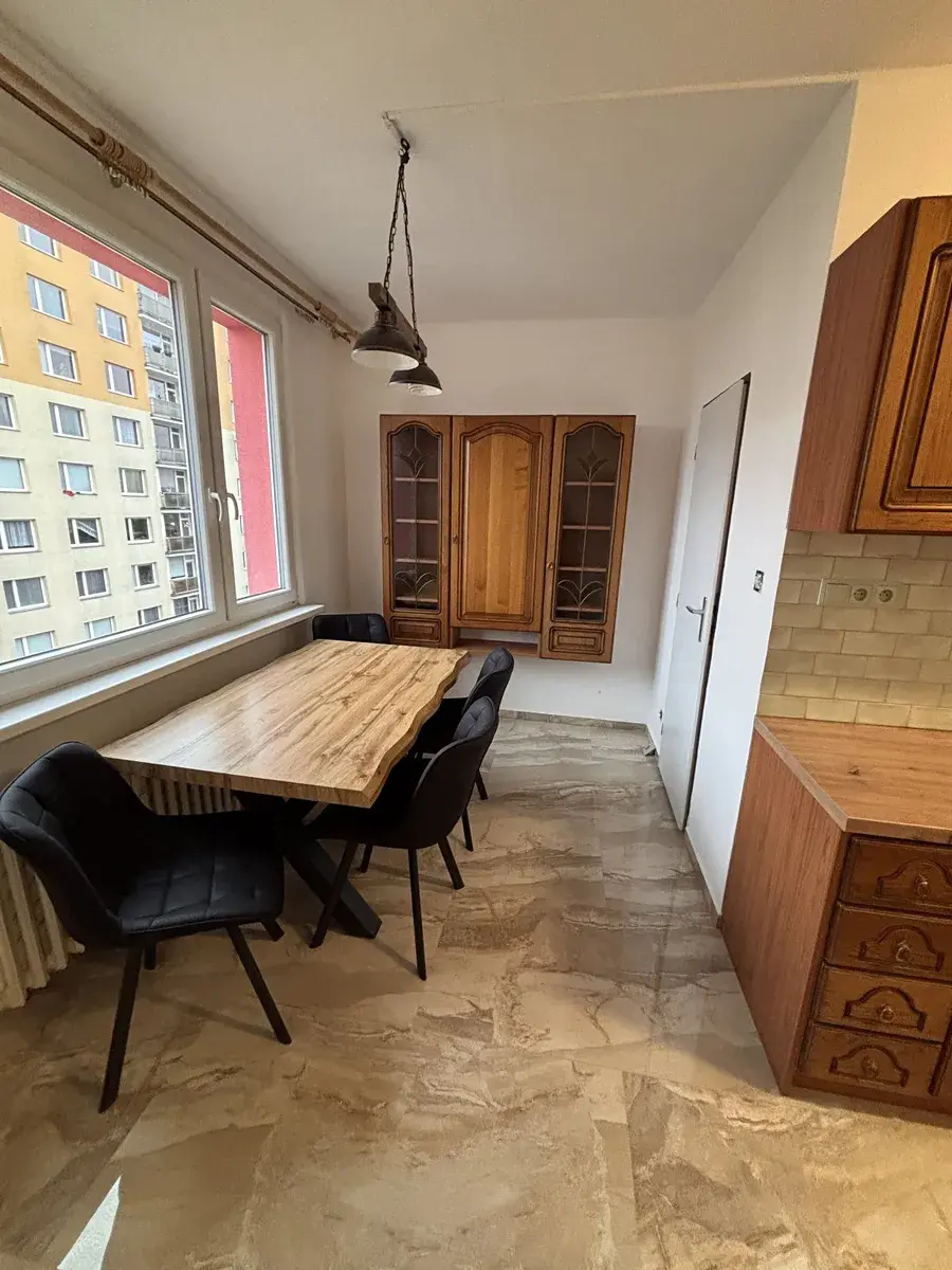 Byt se nachází ve 9NP z 11NP panelového domu v Ruprechticích. Je v klidné a vyhledávané lokalitě a má výbornou polohu s dobrou dostupností do centra města a výbornou občanskou obslužnost (centrum Tesco, lékárna, Komunitní centrum Konopná, zastávka MHD do 7 min chůze od domu). Byt má prostornou předsíň se šatnou. Z předsíně je vstup na WC, dále do velkého pokoje, kuchyně a obýváku. Kuchyň má velmi pěknou kuchyňskou linku s vestavěnými spotřebiči ( plynová varná deska, elektrická trouba ). Z kuchyně je druhý vstup do pokoje a vstup do koupelny. V kuchyni je jídelní kout s novým stolem, židlemi a je ze nábytek, stejný jako kuchyňská linka. Ložnice a kuchyň jsou orientovány na východ. Velký pokoj má jihozápadní orientaci. Je zde krásný výhled na Ještěd a Javorník. Koupelna je s vanou a umyvadlem a je zde starší automatická pračka. WC je samostatné a je zde i malé umyvadlo. V předsíni je ještě vestavěná skříň. V komoře je policový systém. K bytu patří sklepní koje a společná lodžie v mezipatře.
