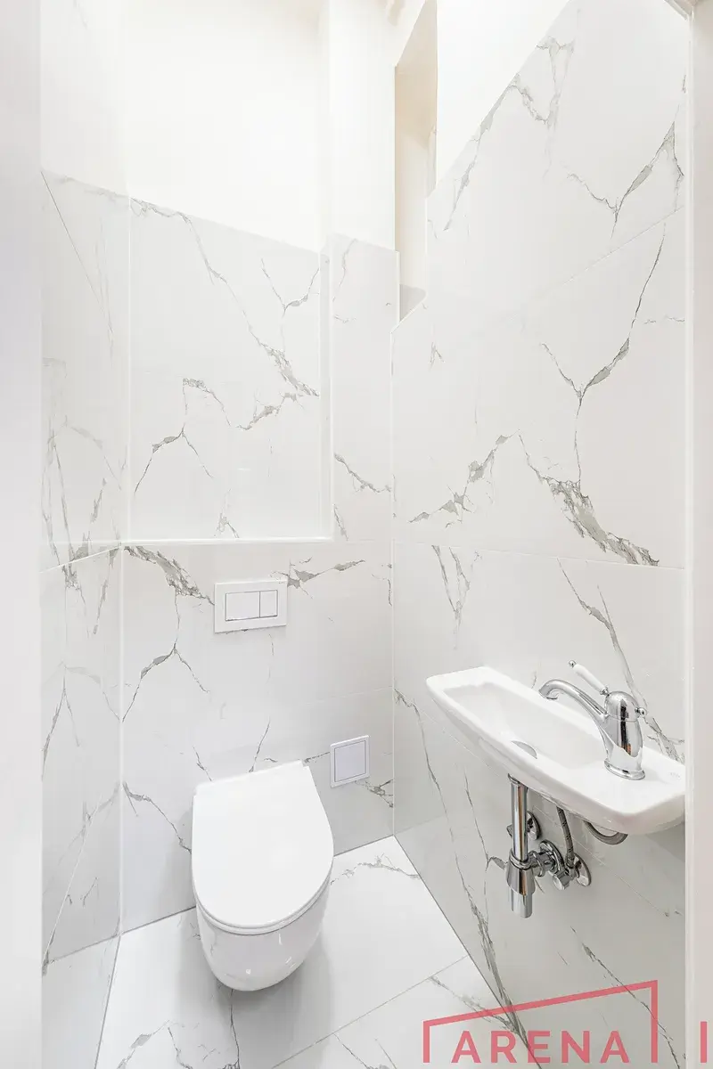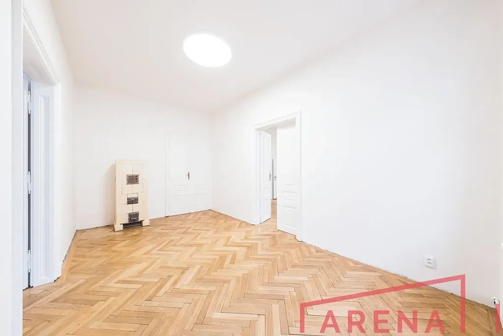 Interiér prošel citlivou renovací – nové parkety podtrhují noblesu vysokých stropů a velkých místností. Byt nabízí čtyři samostatné, nádherně světlé pokoje, které lze využít jako ložnice, pracovnu i reprezentativní obývací prostor.