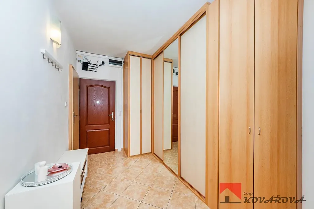prostoná vstupní chodba s vestavěnou skříní.
