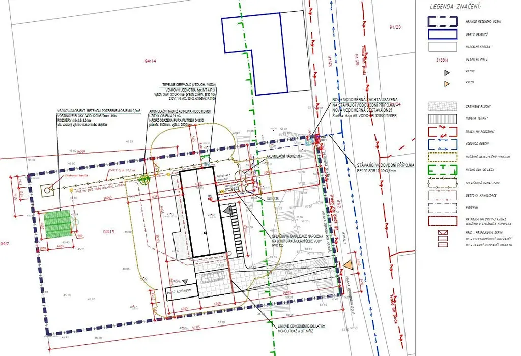 Inženýrské sítě – přípojka elektřiny a veřejného vodovodu na hranici pozemku (v přilehlé komunikaci), kanalizaci lze řešit vlastní čističkou odpadních vod či vsakovacím vrtem. Příjezdová zpevněná komunikace na hranici pozemku (východní hranice). Při západní hranici pozemku vede též přístupová komunikace, ale nezpevněná.