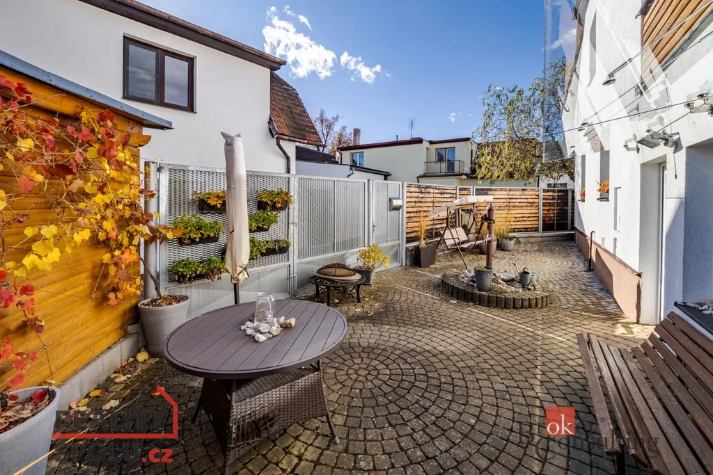 Dům se nachází na pozemku, který má kolem 110m2 + pergola a dostatek místa na parkování.