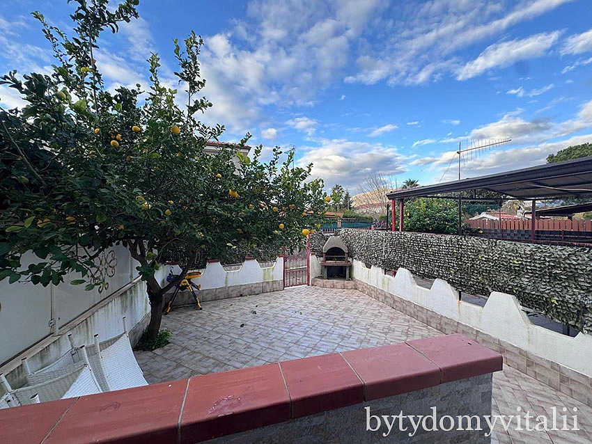 Villetta s terasou a předzahrádkou o velikosti 65 m². Na předzahrádce je krásný, vzrostlý pomerančovník. Villa se nachází v klidné, vilové části Scalea v Via del Mare.