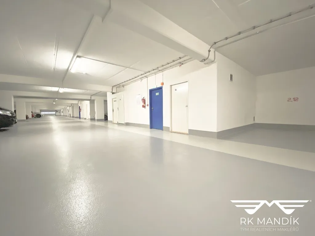 Stání se nachází v 2PP a, vjezd do garáží je limitován výškou 2,1m.