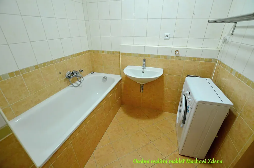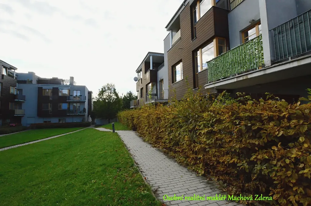 Dispozice bytu 2kk s balkonem nabízí prostorný obývací pokoj (33,5 m²) se vstupem na balkon a kuchyňským koutem vybaveným moderní kuchyňskou linkou a vestavěnými spotřebiči (lednice s mrazákem, elektrická trouba, myčka, varná deska, digestoř). Ložnice (15,2 m²) má rohové okno s příjemným výhledem do okolí. Koupelna (4,3 m²) je vybavena vanou a pračkou, toaleta (1,2 m²) je samostatná. V předsíni (4,3 m²) se nachází vstup do praktické komory (2,5 m²). Podlahy tvoří plovoucí podlaha a dlažba. Vytápění a ohřev vody jsou řešeny dálkově v rámci bytového komplexu. Součástí nájmu je také sklep. K bytu je možné pronajmout kryté garážové stání v 1. podzemním podlaží domu za 1 500 Kč měsíčně. Díky kvalitnímu zateplení a moderním oknům má budova nízké náklady na vytápění. Energetická náročnost budovy je třídy B – velmi úsporná.