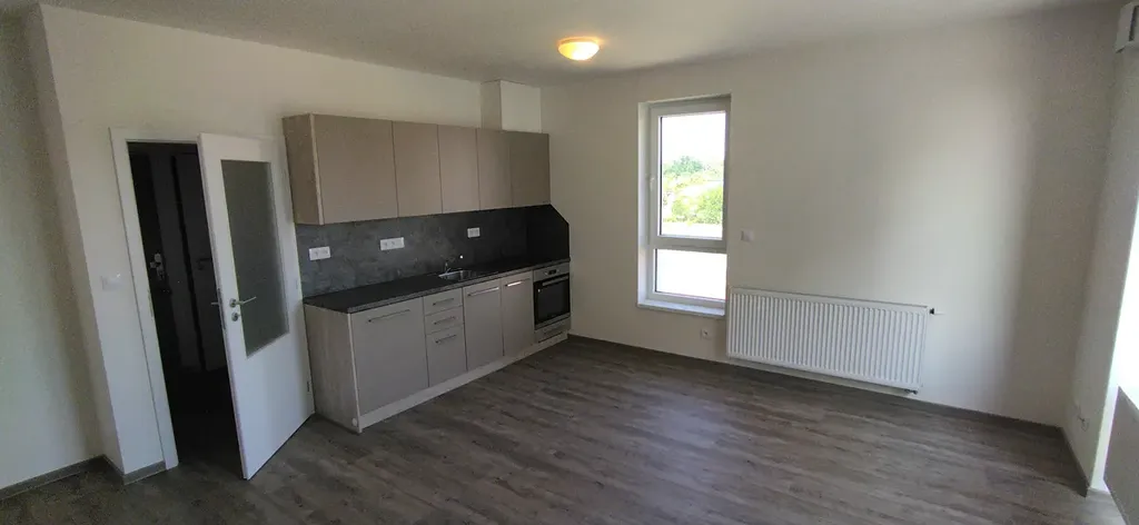 Dovolujeme si Vám nabídnout dlouhodobý pronájem bytu v novostavbě o dispozici 1+kk o podlahové ploše 36,3 m2 + sklepní kóji o výměře 2 m2 + balkón o výměře 5,7 m2 nedaleko stanice metra Rajská zahrada, trasa B. Byt se skládá z předsíně, koupelny + WC a obývacího pokoje s kuch. koutem. Byt je umístěný ve 5. nadzemním podlaží domu s výtahem. Jde o novostavbu domu. Velikou výhodou jsou tepelná čerpadla a fotovoltaika na střeše domu, čímž jsou nižší náklady teplo, elektřinu, ohřev TUV atd.