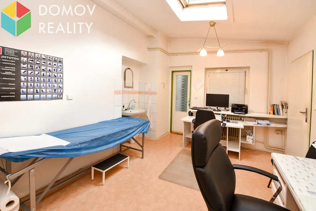 Pronájem komerčního prostoru 21 m² – ideální pro zřízení ordinace, kosmetického, nebo masážního studia, kanceláře či jiného podnikatelského využití. Tento prostor je umístěn v prvním patře Lékařského domu na Plzeňské ulici cca pět minut chůze od Husova náměstí v Berouně. Součástí pronájmu je šatna (7,5 m2), čekárna (8 m2), sociální zařízení.
