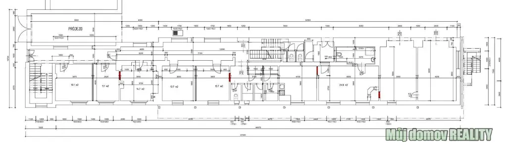 Budova disponuje celkem 26 pokoji a praktickým dispozičním řešením.