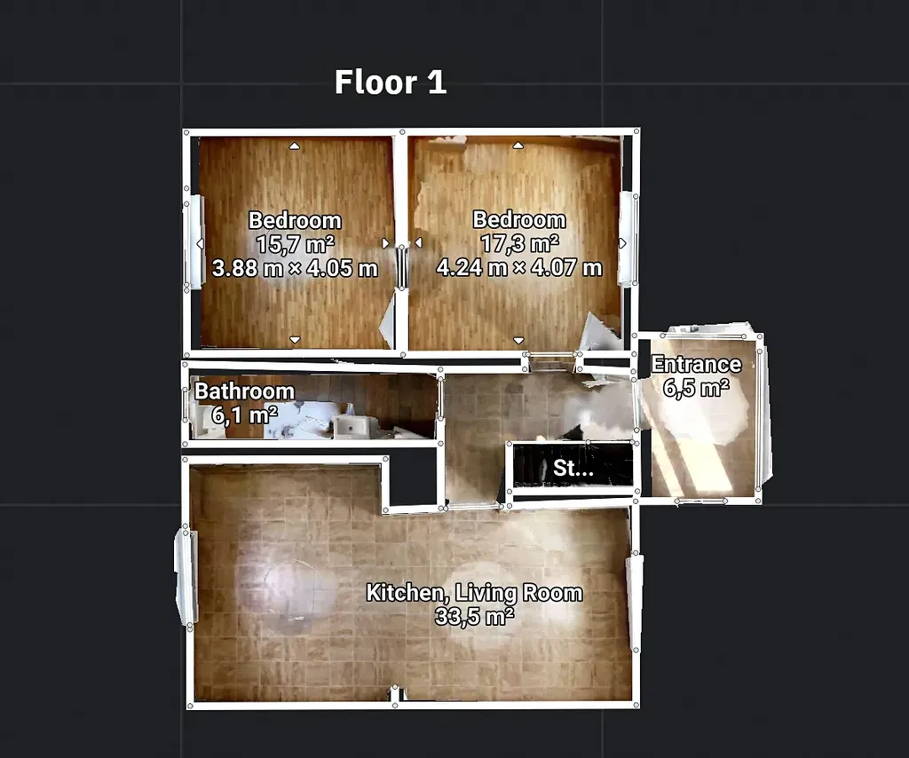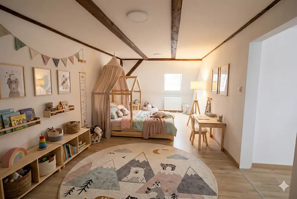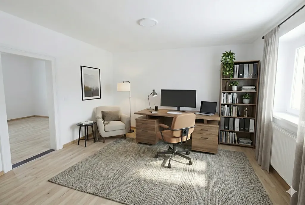 Interiér domu je naskenovaný, využijte virtuální prohlídku umístěnou ve fotogalerii. Fotografie s nábytkem jsou vytvoření pomocí AI a slouží k lepší představě o využití interiéru.