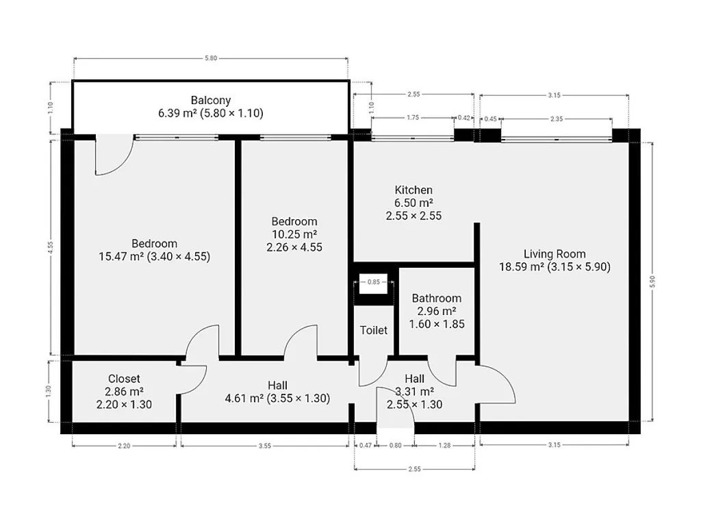 Skládá se ze vstupní chodby s velkou, vestavnou šatní skříní, dvou pokojů z nichž jeden má vstup na lodžii, samostatné koupelny s vanou, pračkou a umyvadlem a oddělené toalety.