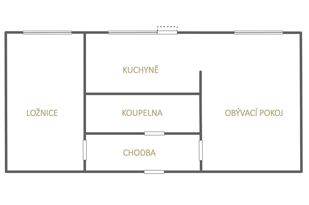 Disponuje vstupní chodbou, kde se po levé straně nachází skříň a odkládací stěna. Vlevo je ložnice, která je vybavená postelí a skříněmi. Z chodby se dostaneme dále do obývacího pokoje. Zde je sedačka, křeslo s taburetem, konferenční stůl a stěna. Z tohoto pokoje se vchází do kuchyně. Kuchyňská linka má elektrickou troubu, plynovou desku a lednici. Odsud je vchod na balkonek. Poslední místností je koupelna. Zde je sprchový kout, umyvadlo se zrcadlem, pračka a WC. V celém bytě jsou plastová okna a nové dveře.