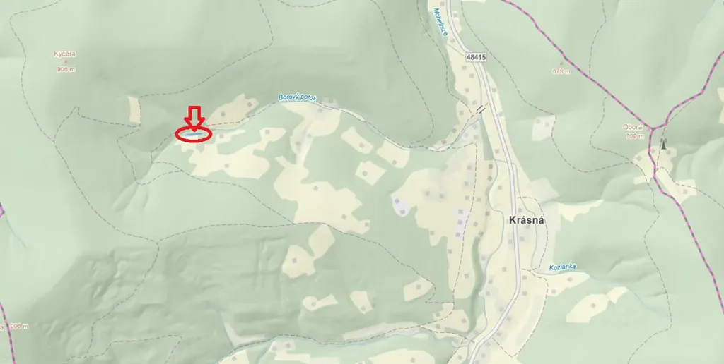 Prodej lesa, Krásná, 824 m2