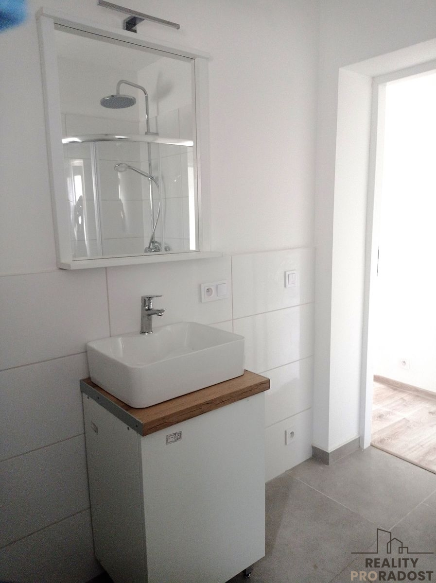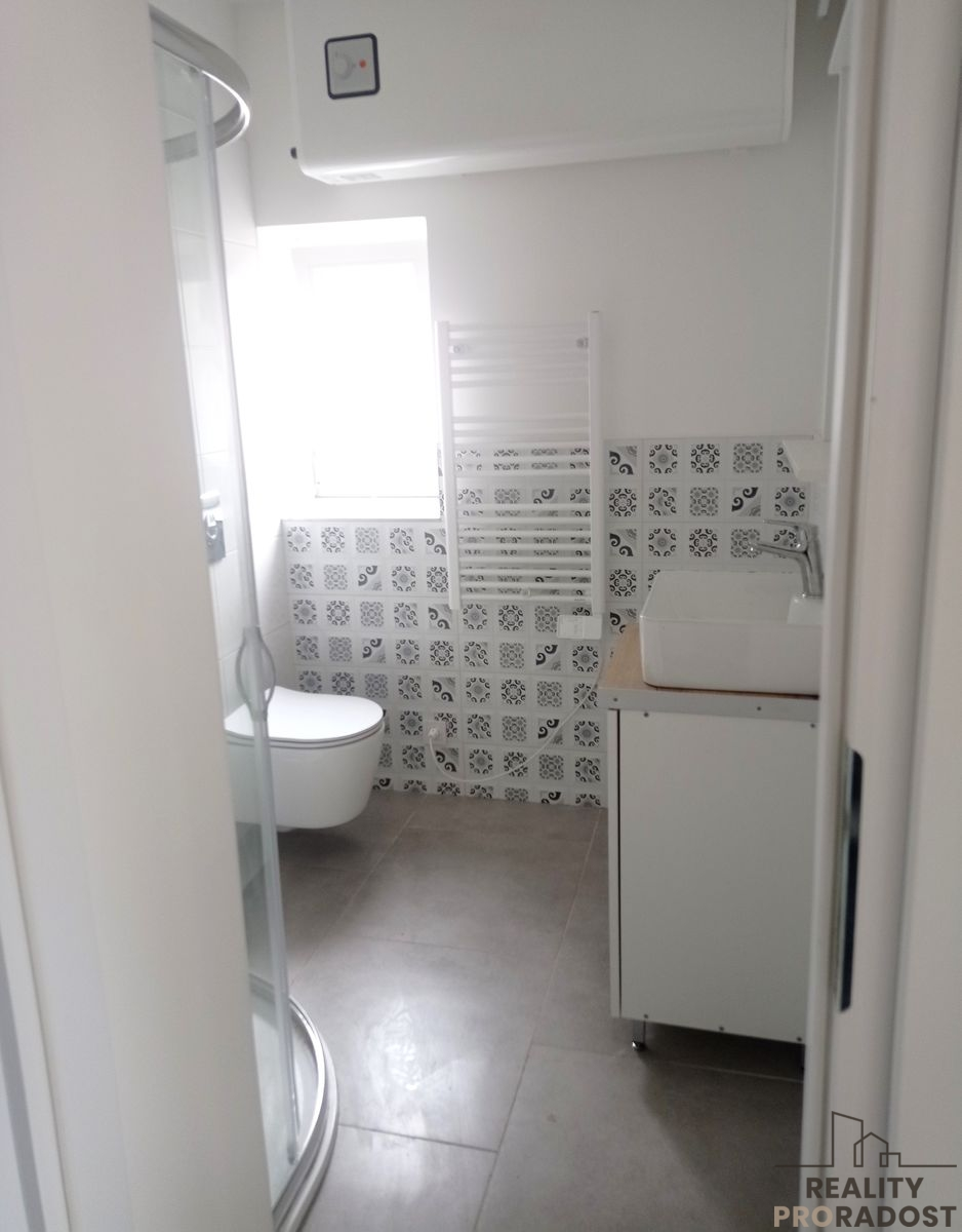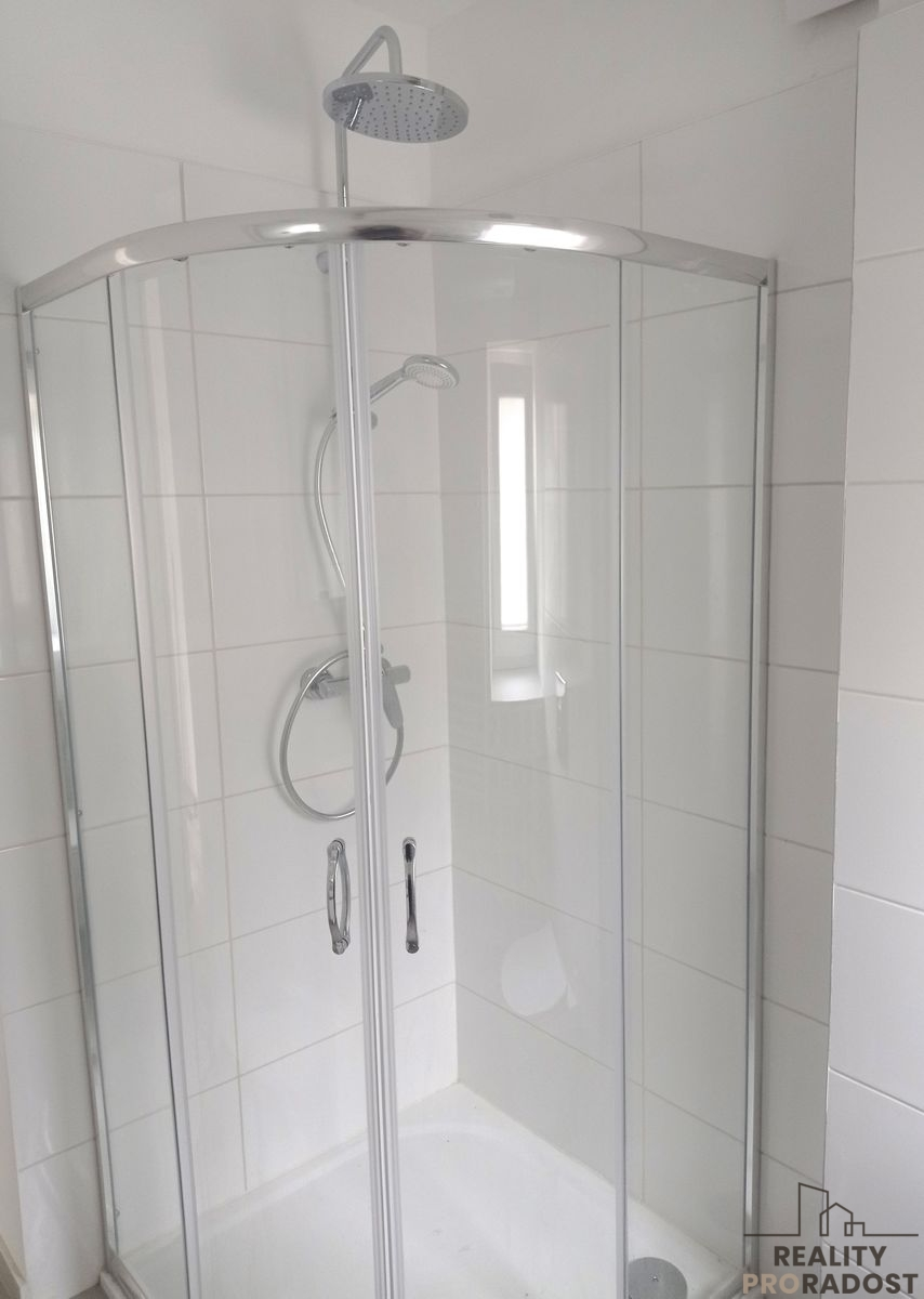 V koupelně je sprchový kout, WC, umyvadlo,možnost napojit pračku.