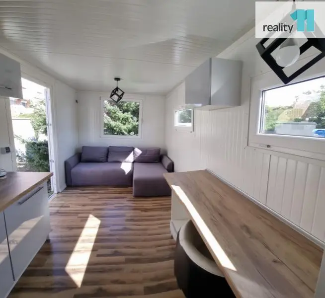 Mobilní domek o velikosti 1kk, 15 m² je plně využitelný a vhodný jak k rekreaci, tak i díky zateplení k celoročnímu užívání.