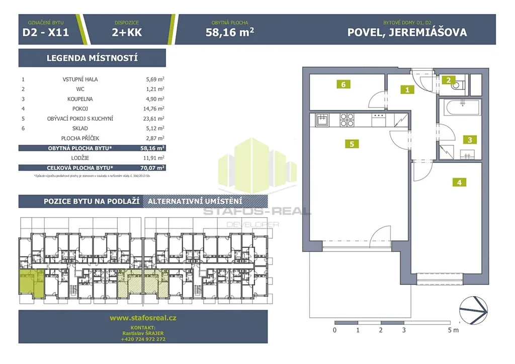 Kupte si nový byt od prověřeného a spolehlivého developera s garantovanou pevnou cenou bez navýšení a bez inflačních doložek. Využijte jedinečné příležitosti nechat si navrhnout a postavit byt přesně podle Vašich přání a potřeb. Společnost STAFOS-REAL působí na trhu od roku 2005, za tuto dobu úspěšně realizovala téměř tři tisícovky bytových jednotek a klientům poskytuje kompletní servis – vlastní výstavbu, výhradní prodej i služby vlastního hypotečního centra, které Vám zdarma zajistí vyřízení financování s připravenými výhodami.