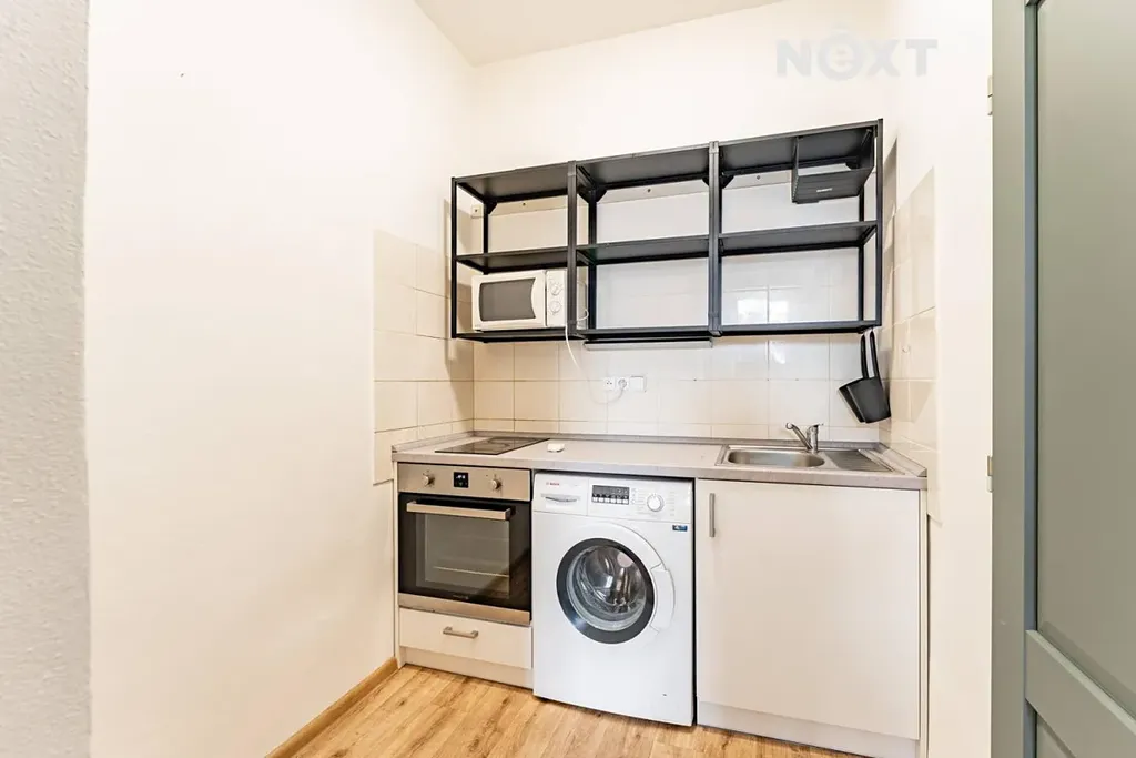 Dispozice bytu nabízí samostatný pokoj, prostorný obytný pokoj vhodný jako obývací část, menší kuchyň vybavenou pračkou a vestavnou troubou, dále koupelnu se sprchovým koutem, umyvadlem a toaletou.