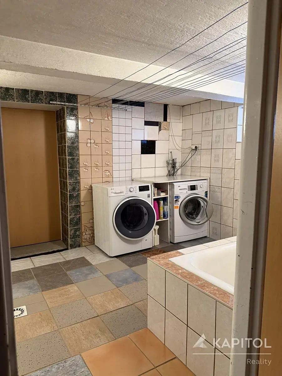 Přízemí tvoří velký obývací pokoj s kuchyňským koutem – srdce domu. Ideální pro společná setkání, vaření i odpočinek. Dále tu najdete dvě prostorné ložnice, útulnou velkou koupelnu, samostatné WC a praktickou spíž. Dům je podsklepený, zde je dále k dispozici obytný pokoj, prádelna a další užitné prostory.