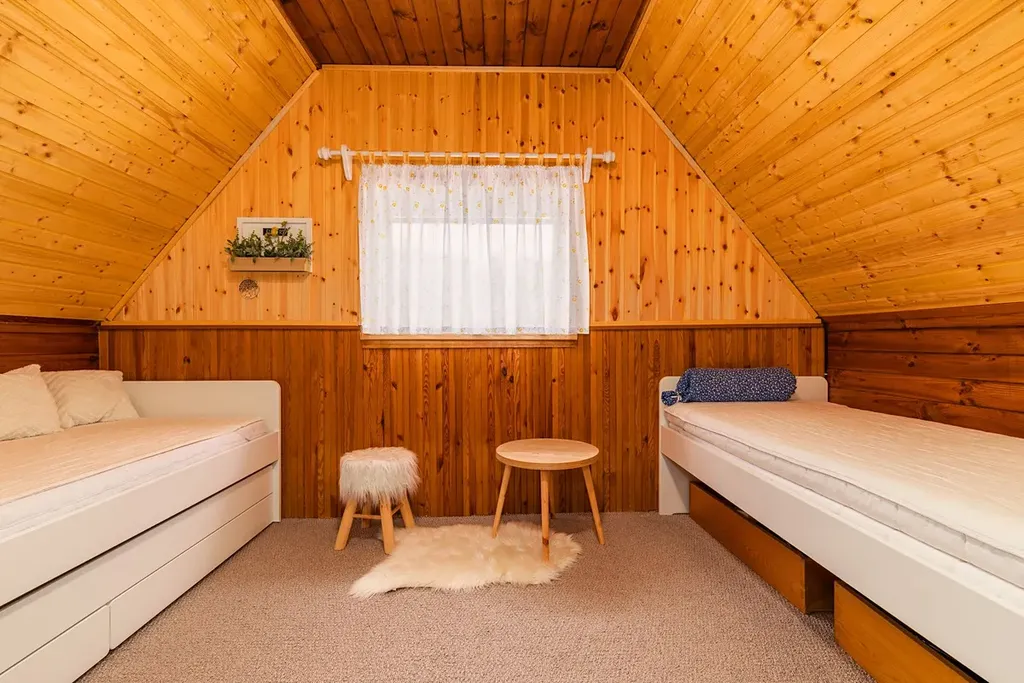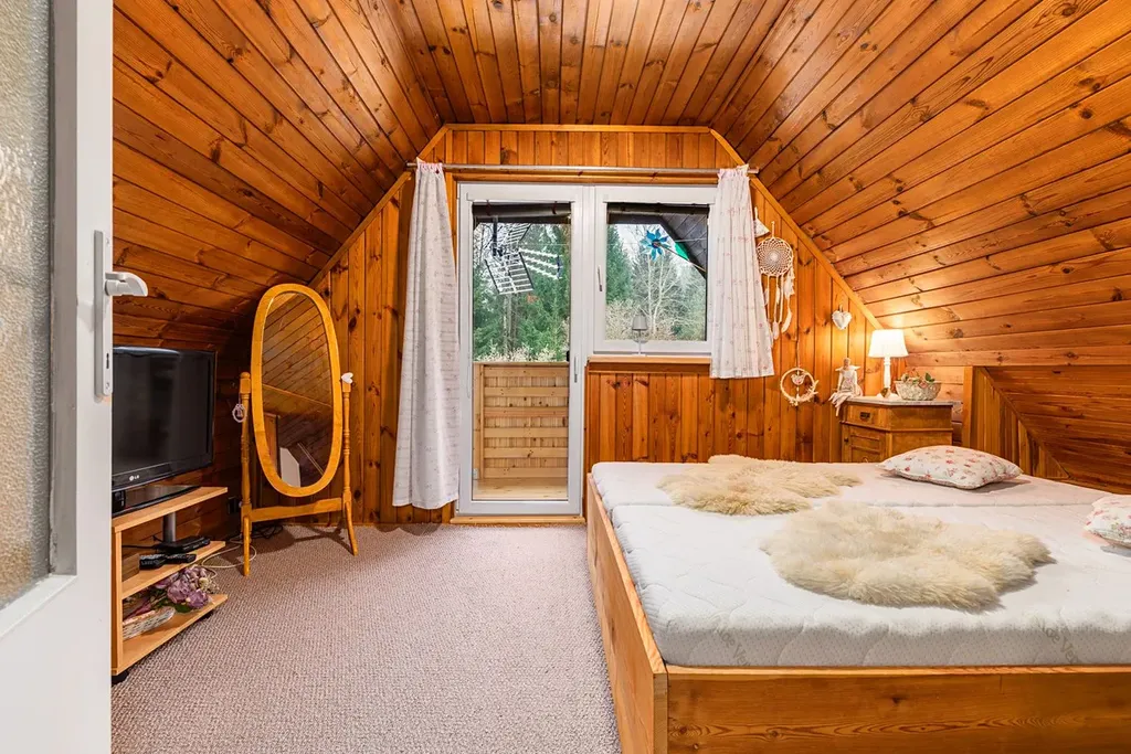 Nenechte si ujít jedinečnou příležitost pořídit si místo pro odpočinek, kde oceníte nejen útulný interiér a dispozici nemovitosti. Obývací pokoj s krbem a terasou, stylová kuchyně, ložnice s terasou v 1.patře, koupelna se sprchovým koutem. Minimální náklady s provozem, na pozemku se nachází studna s vlastní pitnou vodou, teplou vodu nahřívá bojler. Dostupné připojení k internetu ( firma Starnet ).