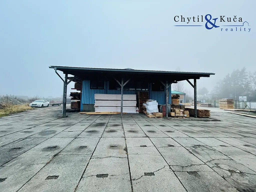 Kolem staveb na pozemku je betonová zpevněná plocha pro pohodlný pohyb vozidel - přemisťování či parkování. K celému areálu je celkové pohodlný příjezd. Sjezdem z hlavní komunikace se rychle dostanete přímo k bráně.