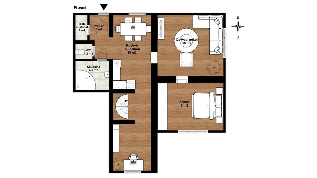 Pozn.: 19 m² domu stojí na pozemku jiného vlastníka – existuje platná nájemní smlouva.