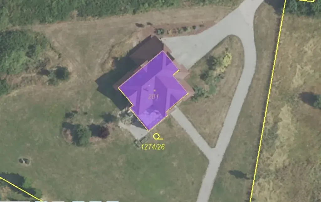 Daná nemovitost je postavená na pozemku č. 281, 214 m2 - zastavěná plocha a nádvoří, parcela č. 1274/26 - zahrada o rozloze 5281 m2, parcela č. 1263/4 - trvalý travní porost, o rozloze 475 m2 a parcela č. 1263/5 - ostatní plocha, o rozloze 40 m2, vše v katastrálním území Buš, obec Buš.