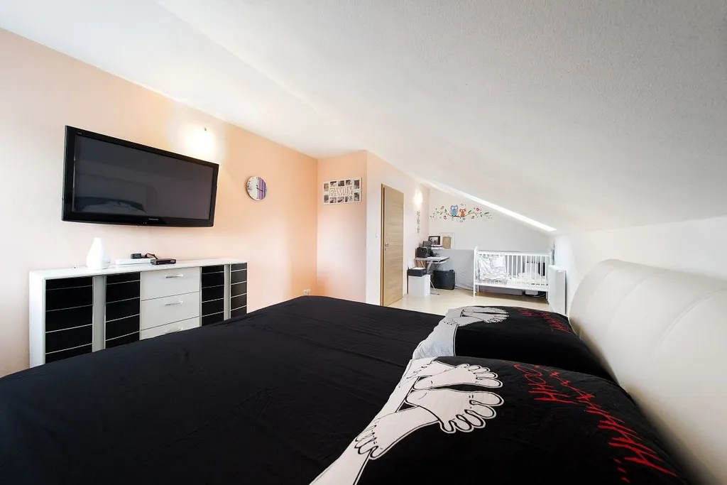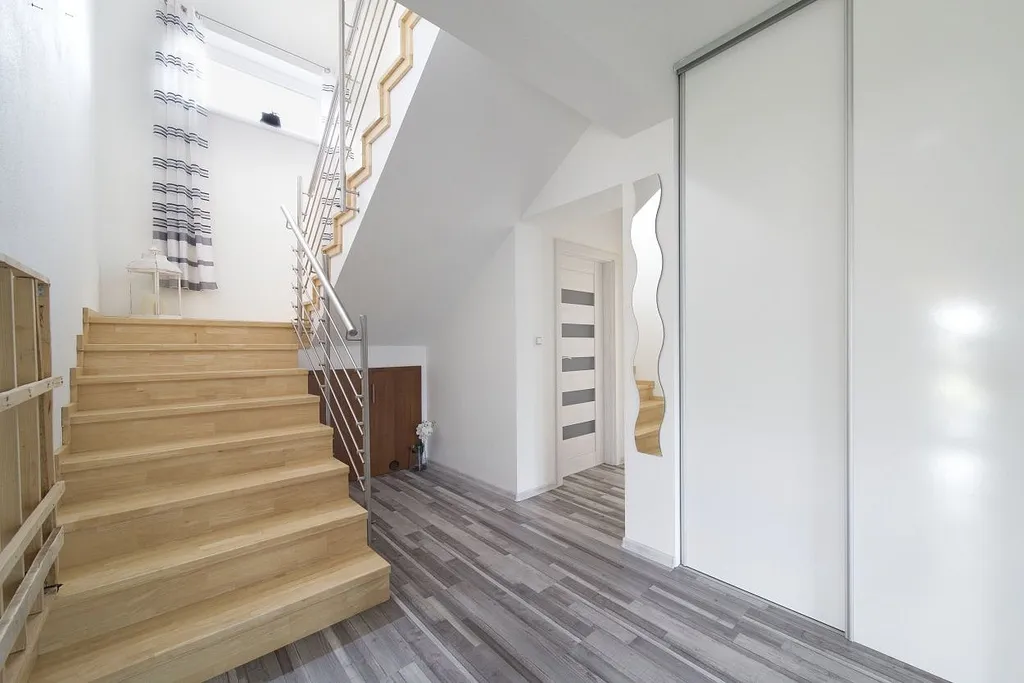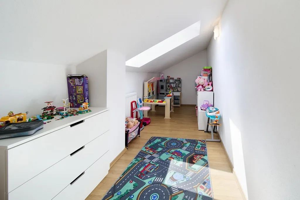 V 1. patře jsou k dispozici tři pokoje. Koupelna s vanou a toaletou.