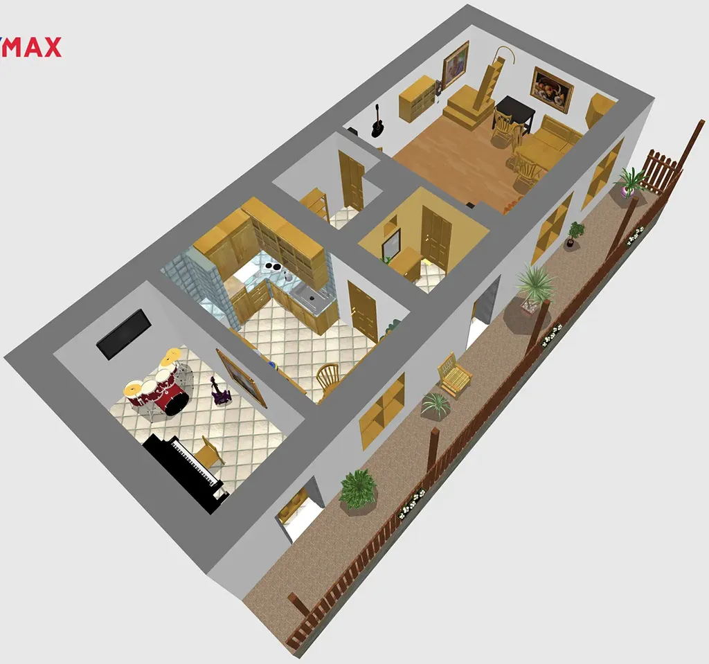 V přízemí domu se nachází předsíň, kuchyně, obývací pokoj a koupelna, dále pak samostatná místnost místnost s vchodem přímo ze zápraží (lze upravit jako další pokoj s vchodem z kuchyně). V prvním patře domu se nachází pokoj s balkonem a půda, kde je možnost vybudovat půdní vestavbu. Do patra vedou příkré tzv. mlynářské schody.