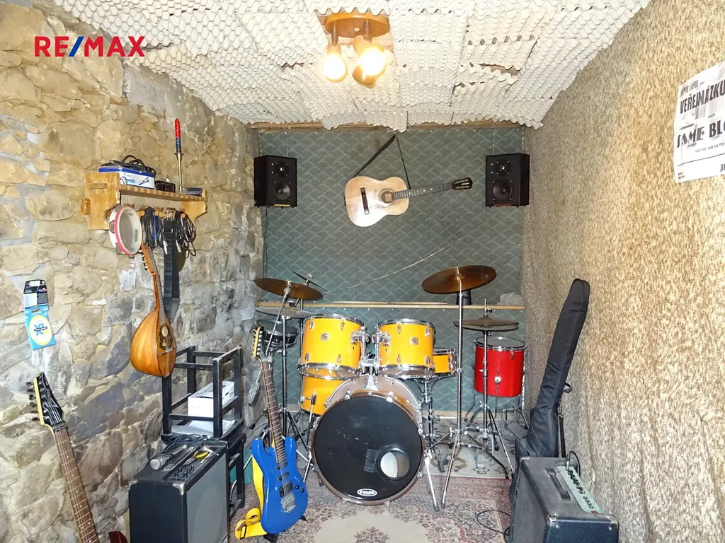 Dům disponuje sklepem o ploše 6 m². Na pozemku se dále nachází také zděná garáž s dílnou, kde je umístěno suché WC.